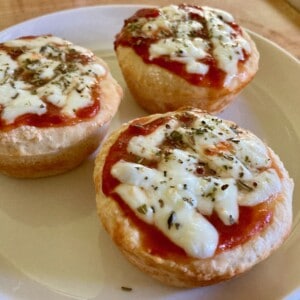 My latest 2-ingredient dough experiment was a total winโlight and delicious deep-dish mini pizzas baked right in a muffin pan! With just five simple ingredients, they came together in minutes and made the perfect portion-controlled, satisfying lunch. Iโm already dreaming up new topping combosโhello, diced turkey pepperoni, sausage, and mushrooms!