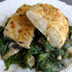 Made this tonight. I could only fit 1/2 pound of spinach in the baking pan, so I sauteed the rest. The recipe called for mushrooms, but didn’t mention them in the procedure so I added them in the saute and in the baking pan. Instead of garlic powder, I used fresh chopped garlic. I also used hake as the fish. This was very tasty and I would make it again!