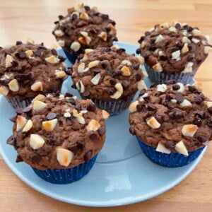 - Mini semi-sweet chocolate chips – Distribute chocolate evenly throughout the muffins. Regular chips can be used but may sink slightly.