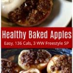 These healthy baked apples can be customized too. Feel free to add up to 1/4 cup of other healthy ingredients to the sugar, butter and spices, such as: