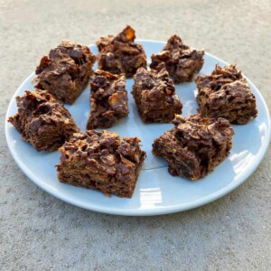 (Must be logged into WW on a smartphone or tablet.) 5 SmartPoints (Green plan) 5 SmartPoints (Blue plan) 5 SmartPoints (Purple plan) 3 PointsPlus (Old plan) You might be thinking it a little strange to be including apple cider vinegar when making these dessert squares. But the recipe only requires a tiny amount and you won’t want to skip it because the cider vinegar slightly cuts the overall sweetness and really brings out the flavor of the raisins. And who can deny the special flavor combination of chocolate and chewy raisins? If your cereal flakes are on the large side, you can crush them slightly before stirring into the melted marshmallow. I left them whole as we prefer the larger crunchy flakes.