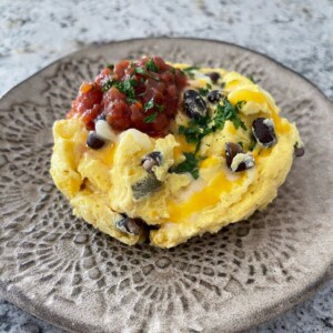 Top with your favorite salsa or pico de Gallo. If eating breakfast in a mug isn’t your thing, you can easily remove this to a small plate.