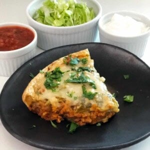 One of my favorite parts is how customizable it is. Once the pie is baked, everyone can top their slice however they like. Keep it classic with shredded lettuce and salsa, or go all out with jalapeños, guacamole, sour cream, and extra cheese for a nacho-style twist.