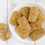 On an ungreased cookie sheet, toast the sesame seeds for about 10 minutes, or until golden.